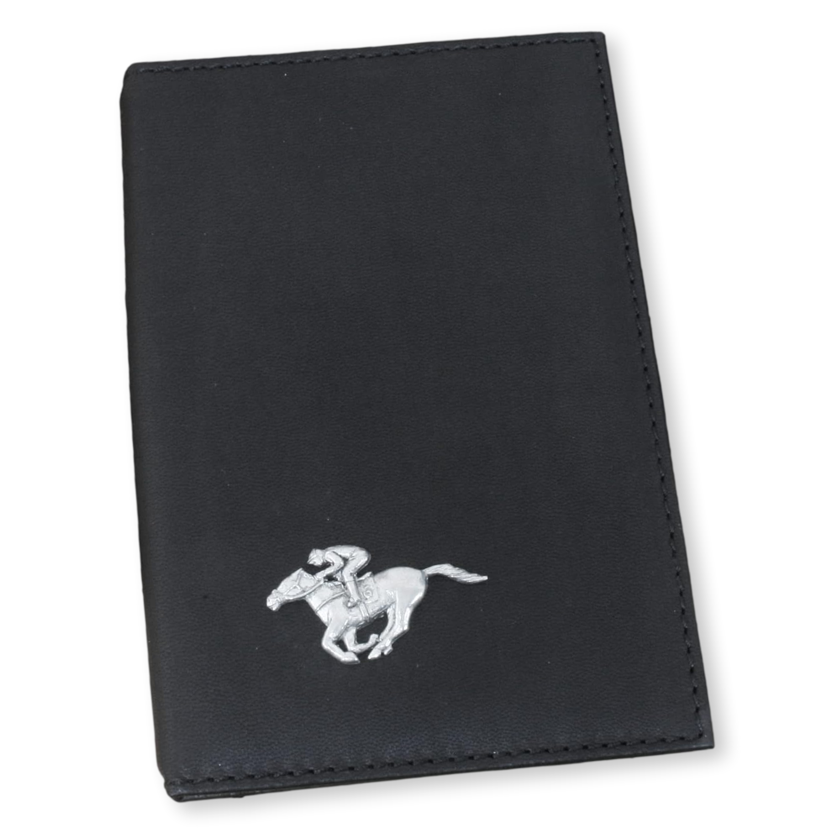Keep your betting slips stylishly organized with this luxurious black leather betting slip cover. Crafted from premium, smooth leather, this cover exudes timeless elegance and sophistication. The front features a hand-cast pewter horse motif, intricately detailed to capture the strength and grace of your equestrian passion.